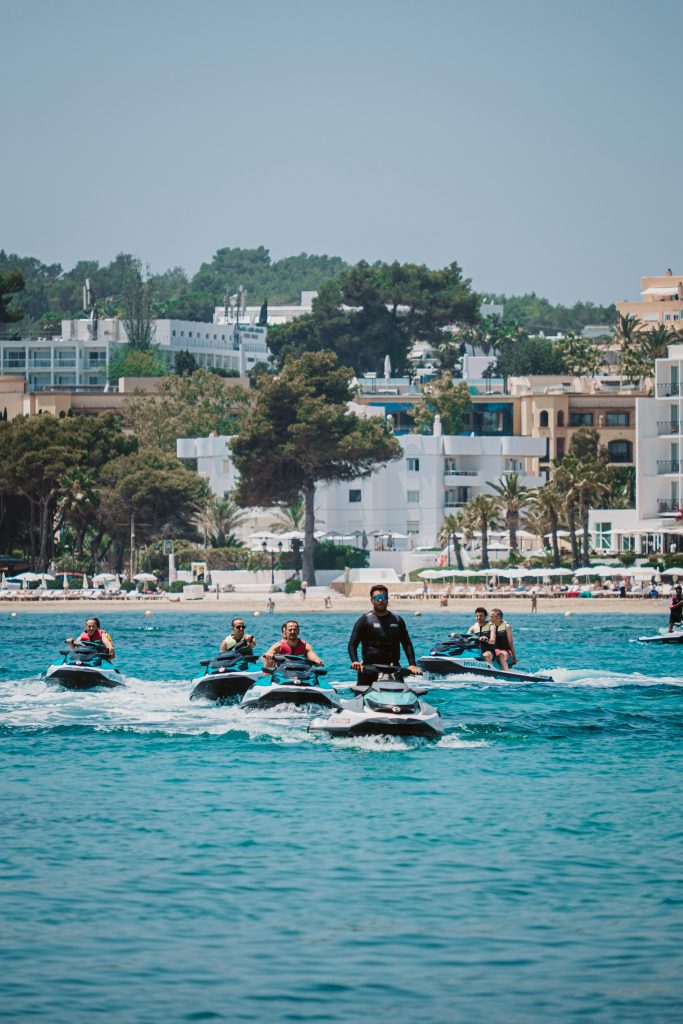 Además, la actividad se desarrolla bajo las autorizaciones administrativas correspondientes, con licencias activas y seguros obligatorios para la actividad profesional de motos de agua en Ibiza.